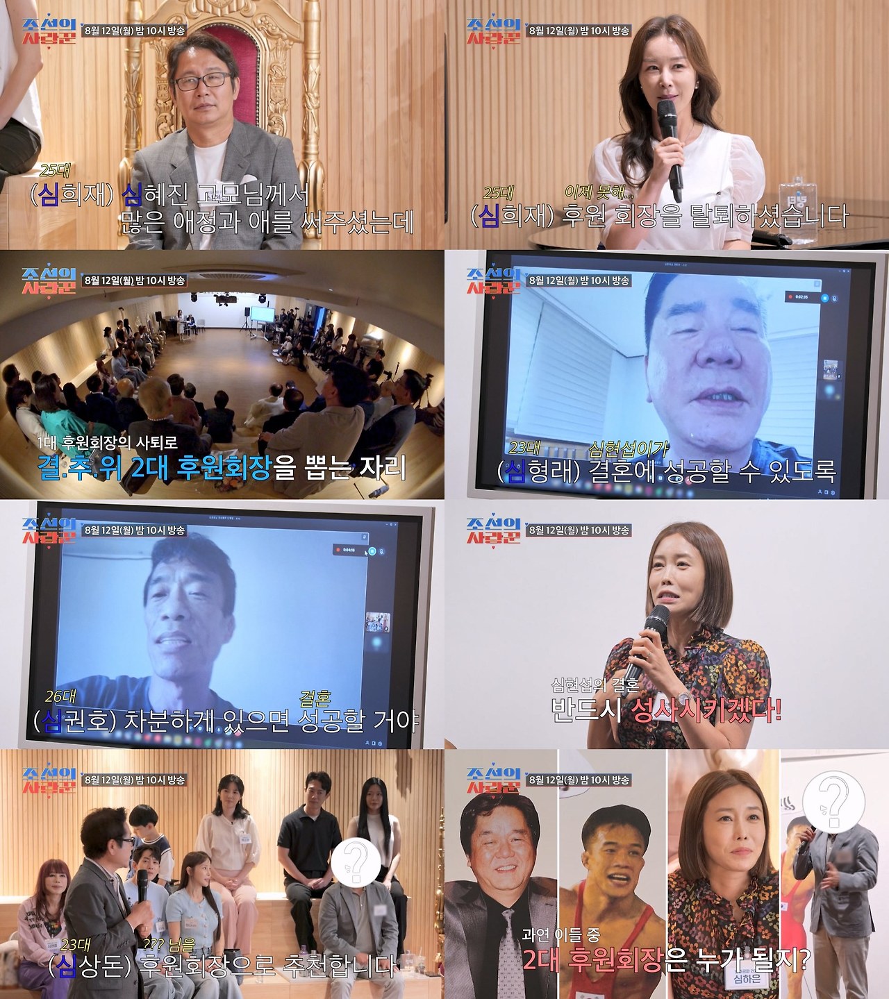 ‘심고모’ 심혜진의 뒤를 이을 ‘결.추.위’ 2대 후원회장은 과연 누가 될 것인지, 그 결과는 12일 월요일 오후 10시 TV CHOSUN '조선의 사랑꾼'에서 확인할 수 있다.